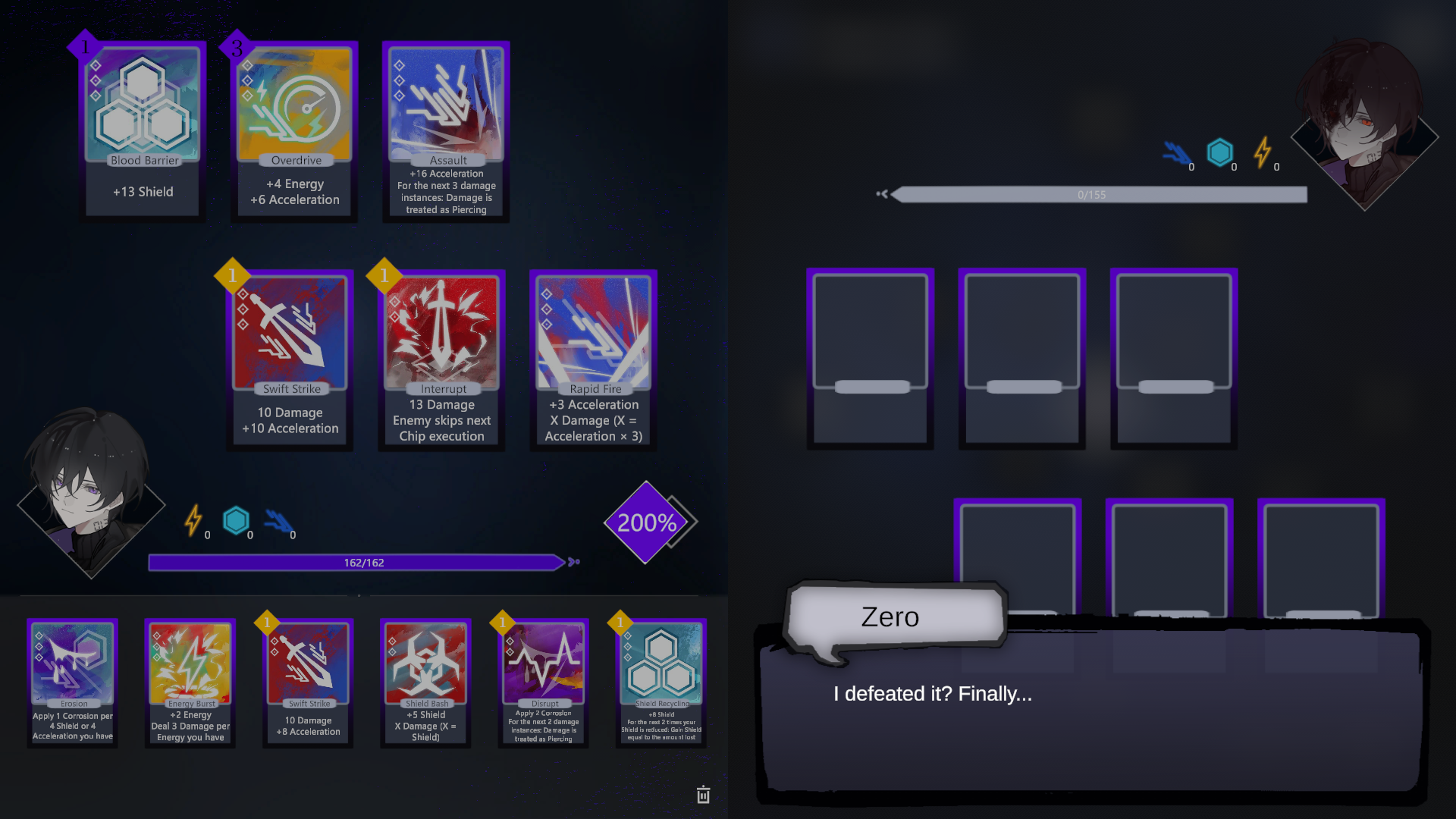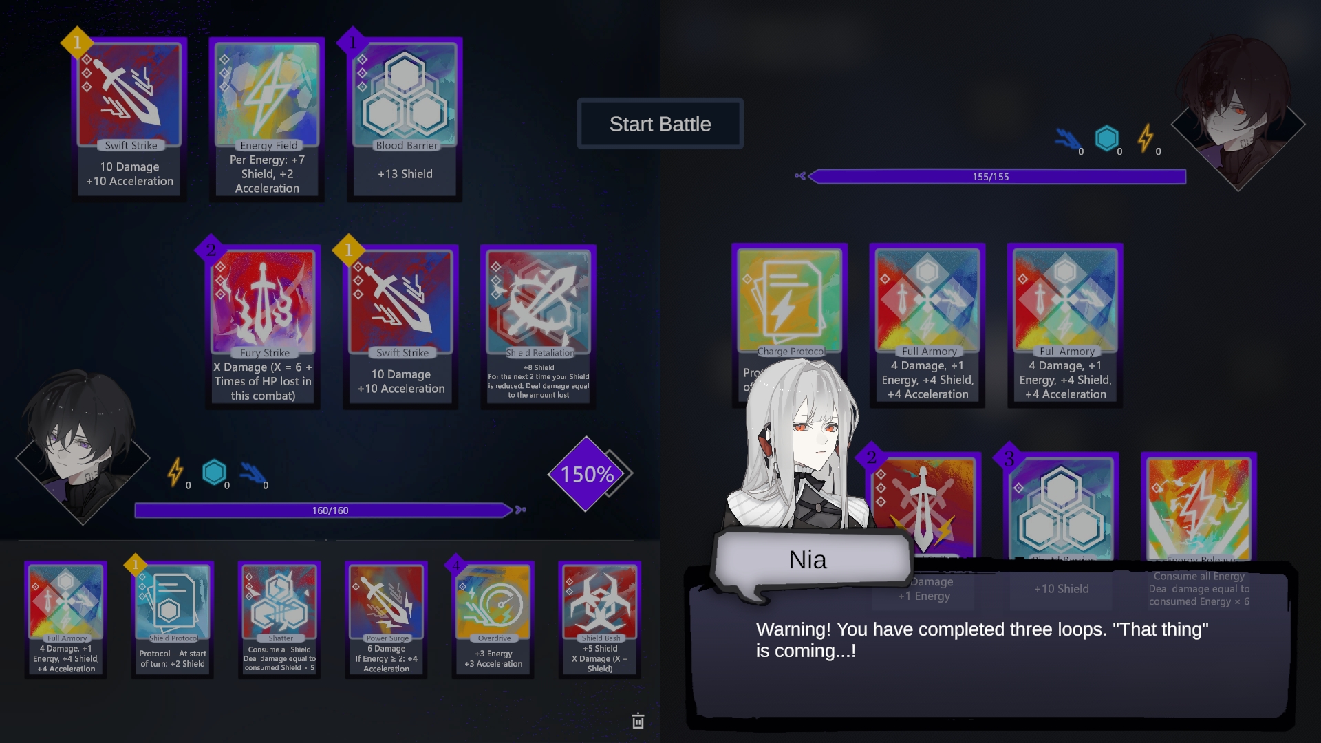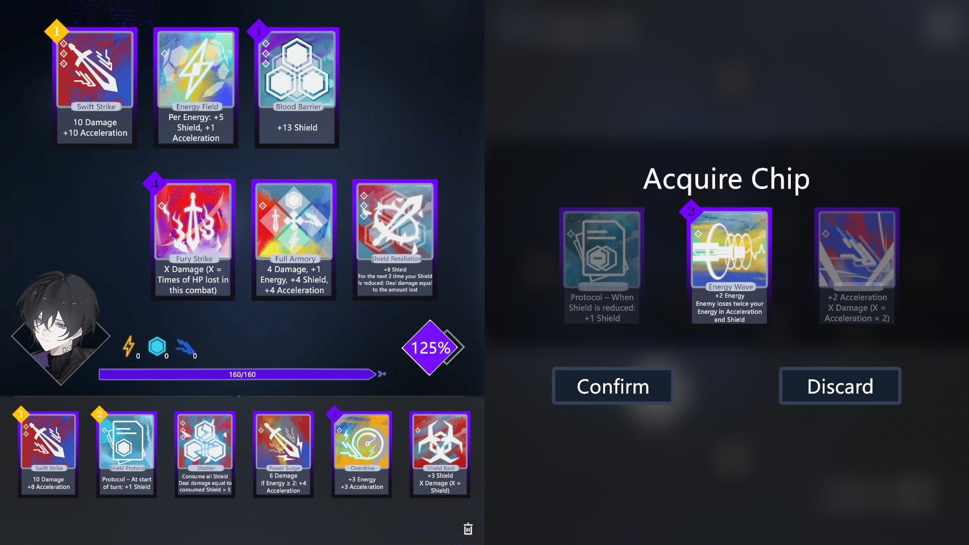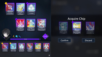 Choose new chips to acquire, upgrade existing chips, increase max HP, or move to trigger random location-based effects.